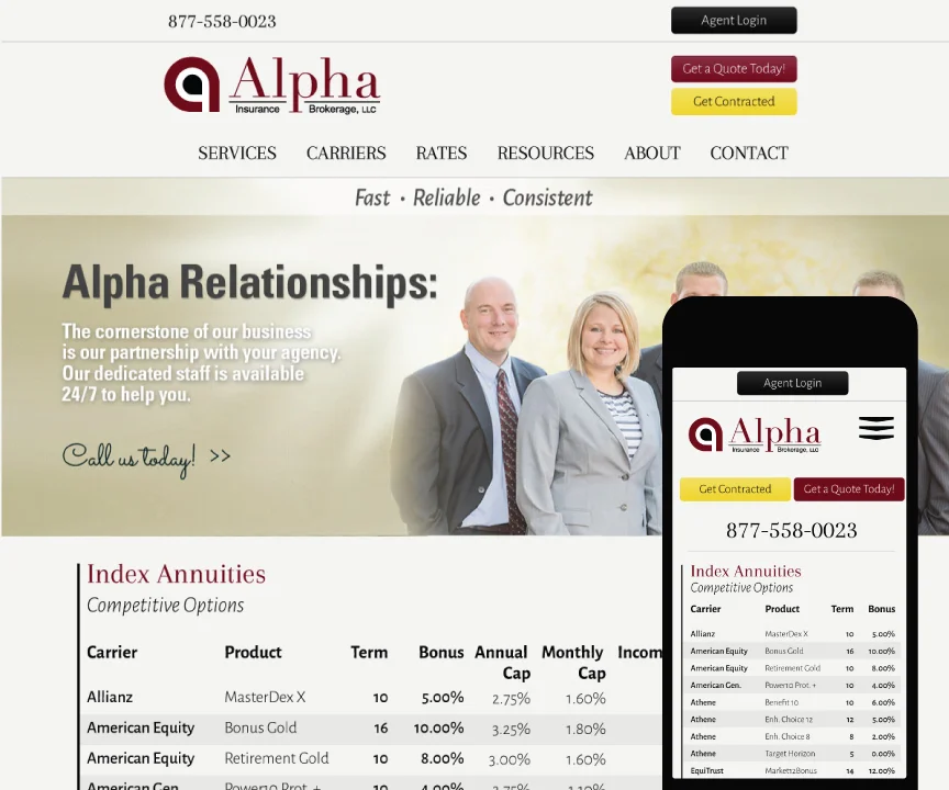 Alpha is an Independent Marketing Organization and needed a tool that could easily update rates for their Agents. They are a fairly new company and wanted to portray professionalism and experience. We wanted to keep it simple, accessible and legible. We organized the information for easy interaction and reading.