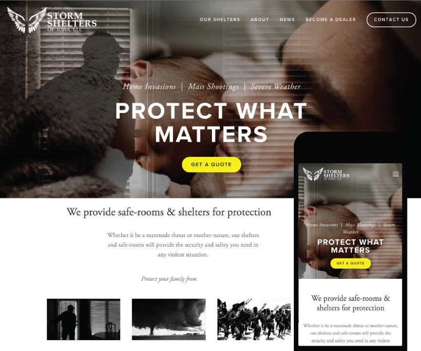 Storm Shelters of Iowa is affiliated with We Shelter America, a commercial storm shelter wholesaler. Storm Shelters wanted to separate from We Shelter, and sell residentially. They wanted to appeal to homeowners and families.